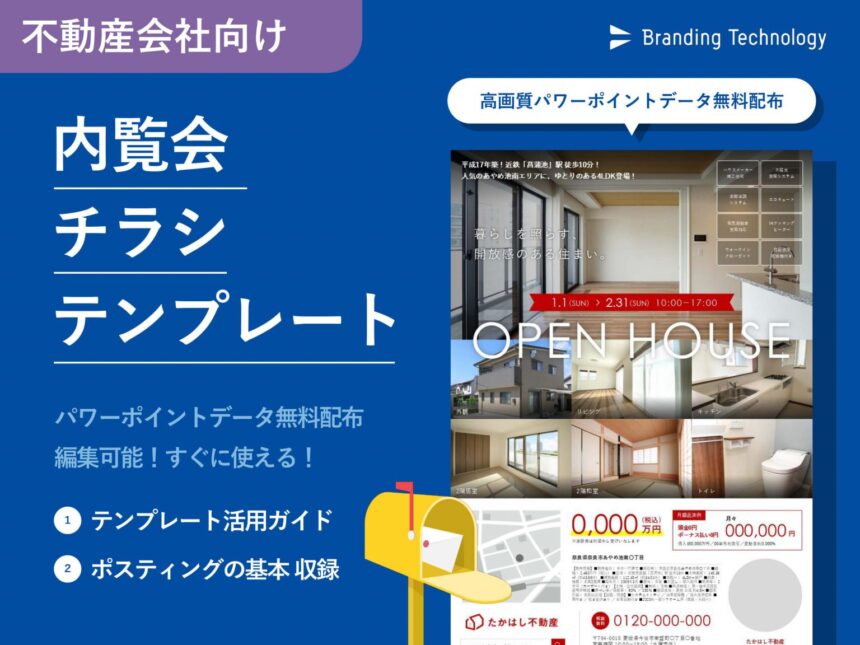 オープンハウス集客のために最適化した、A4ポスティング用チラシテンプレートを無料配布しています。