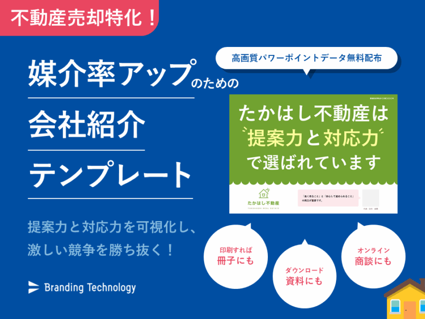 特に中小の不動産会社では、大手と比較されたときに自社の信頼を補強できる会社紹介資料の存在は重要です。