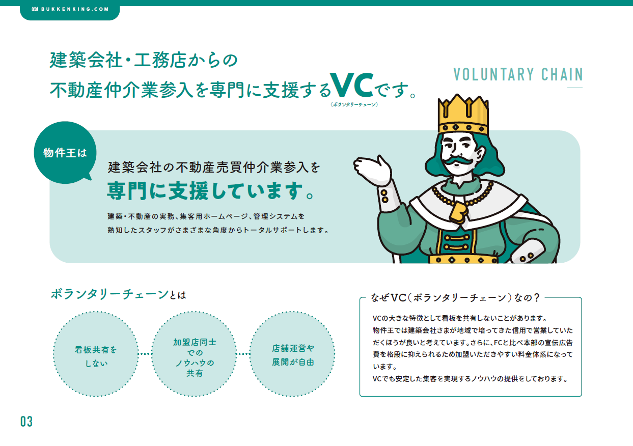 物件王は、建築会社・工務店の不動産仲介業参入を専門に支援するボランタリーチェーン(VC)です。
