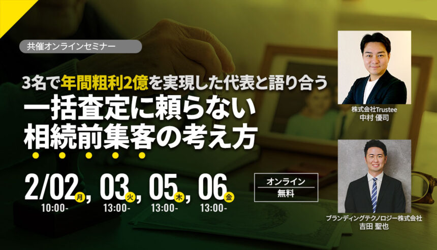 本セミナーでは、相続が発生してから動くのではなく、親が施設に入居するタイミングや定年退職を迎えるタイミングなど、相続の“前段階”からどのように相談の接点をつくり、将来の売却・整理につながる関係性を築いていくのかをテーマに、不動産会社の経営視点と現場実務の両面からトークディスカッションを行います。