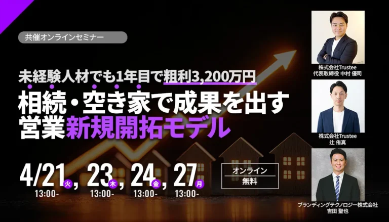 2018年リクルート住まいカンパニー(SUUMO)では、不動産会社60窓口・工務店20窓口を担当。住宅不動産業界の集客領域・採用領域に課題を抱えるクライアントに多く出会い、最適な集客がSNSと確信し、個々のニーズに合わせたインサイトデータが閲覧できるSNS分析ツール「Pegasus」を開発。SNSマーケティングを活用した新しい集客により不動産会社・工務店を助けるため、株式会社TrustLeadを設立。わずか2年の間に3000アカウントの分析結果を基にコンサルティング事業を展開し。現在では集客に苦しむ住宅不動産業界の経営者からの相談が絶えない。