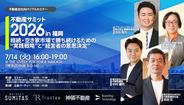 そこで本カンファレンスでは、相続・空き家市場攻略で「1人年間5,000万円の粗利」を実現したノウハウを軸に、これからの建築・不動産業界で成果を出すための最新トレンドと実践施策を公開します。