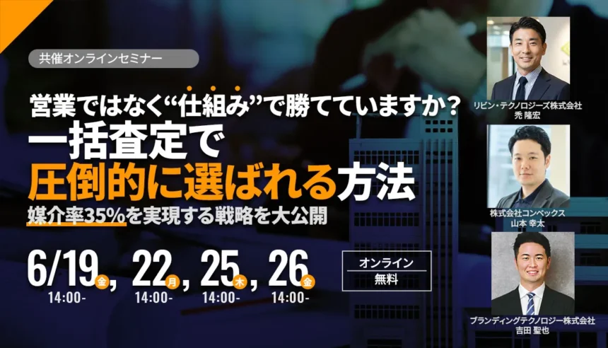 本セミナーでは、実際に一括査定経由で媒介率35%を実現した企業の事例をもとに、