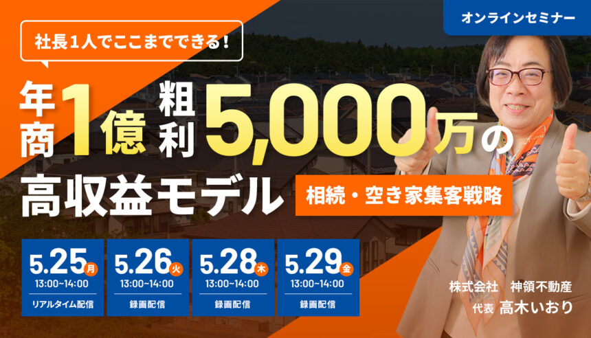 “相続・空き家”という成長市場を起点に、元付案件を安定的に獲得し、利益を最大化していくための具体的な戦略と打ち手をお伝えします。